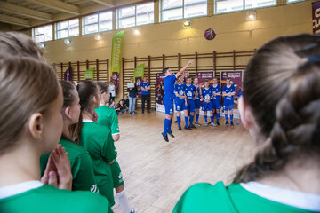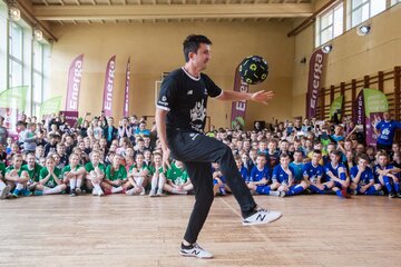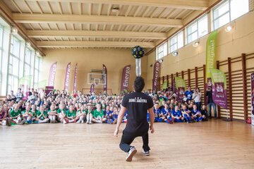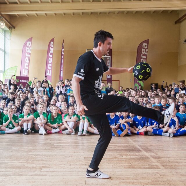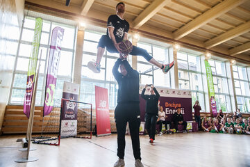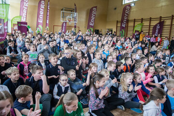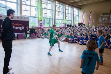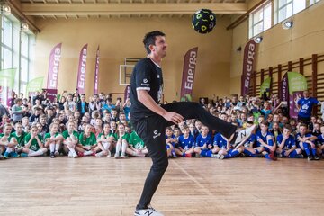W środę sala gimnastyczna szkoły w Kamienicy była areną sportowych zmagań na najwyższym poziomie. Swoje umiejętności zaprezentowali nie tylko ambasadorzy, którzy chętnie odpowiadali na pytania i poprowadzili rozgrzewkę, ale również wszechstronnie utalentowani uczniowie. Drużyna Energii była pod wrażeniem przygotowanych przez nich występów artystycznych, a szczególnie pokazu sztuczek piłkarskich, którego nie powstydziłby się sam Krzysztof Golonka.