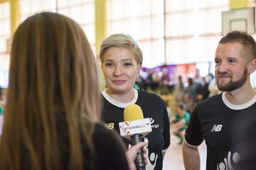 - Grono pedagogiczne jest zwolennikiem zasady w zdrowym ciele zdrowy duch. Wprowadziliśmy program nauczania wychowania fizycznego już u przedszkolaków i powoli pojawiają się tego pierwsze efekty. Chcemy nie tylko, by dzieci były sprawne, ale też zależy nam by zaszczepić w nich sportowy styl życia, by aktywność sportowa nie kończyła się w murach szkoły. Znani ludzie, sportowcy czy celebryci dają uczniom dodatkowy impuls, spotkania takie jak dziś są więc potrzebne – nie krył radości dyrektor Zespołu Szkolno-Przedszkolnego w Olszynach Krzysztof Samborski.